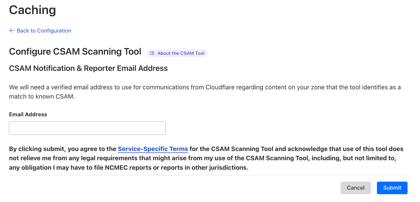 Enable the Tool: Activate the CSAM Scanning Tool on your Cloudflare zone and verify your notification email address.