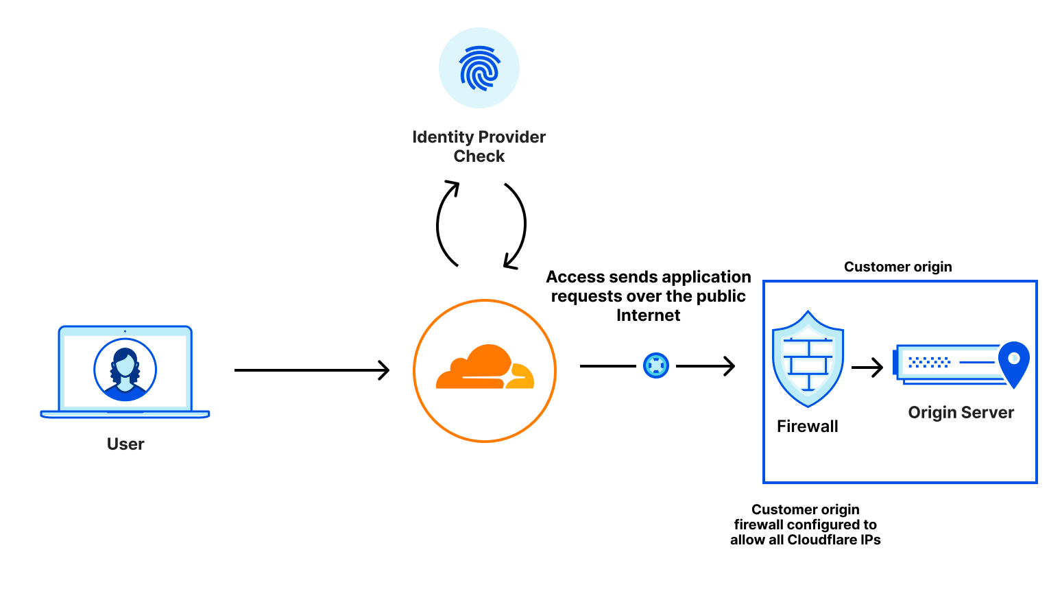 With CNI and Aegis, the only configuration required is an allowlist rule based on the inbound IP address. Cloudflare takes care of the rest and ensures that all requests are verified by Access (and other security products like DDoS and Web Application Firewall). All without requiring software or application code modification!