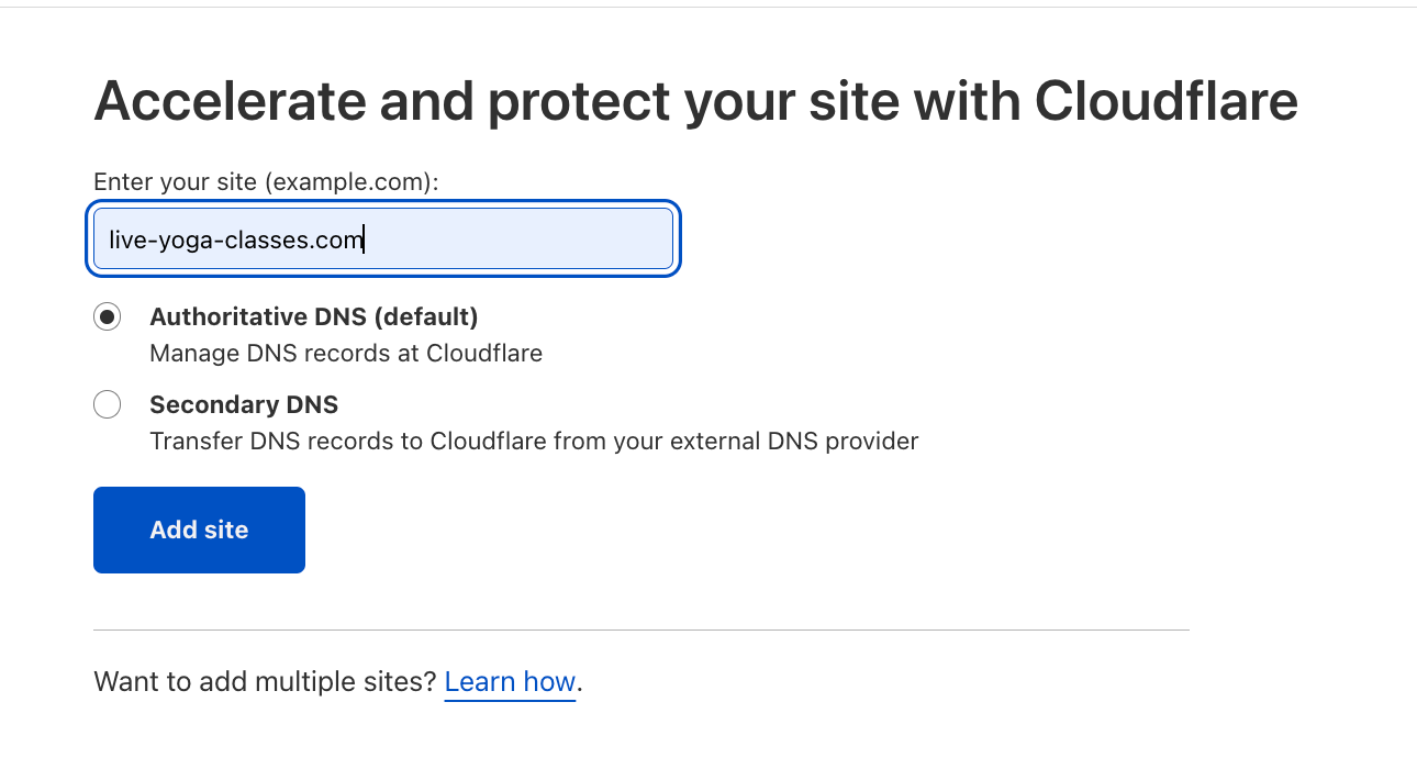 To begin configuring your custom domain, add the domain to your Cloudflare account as a regular zone.