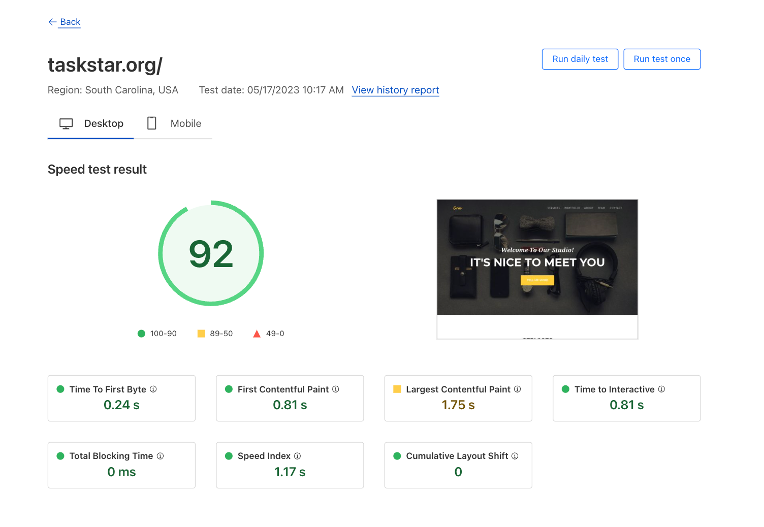 Customers on our Pro, Business, and Enterprise family of subscriptions can run tests from various regions to understand their site's performance in those areas. For instance, if a website is solely hosted in Iowa, USA, and a visitor is accessing it from Sydney, Australia, they will experience a slower page load due to the time it takes for an uncached file to be sent and rendered by the user's browser over a distance of 14,000 kilometers. By running tests from various regions, our customers can gain valuable insights into their website's performance and make informed decisions to optimize it for a better user experience - and an improved page load time.