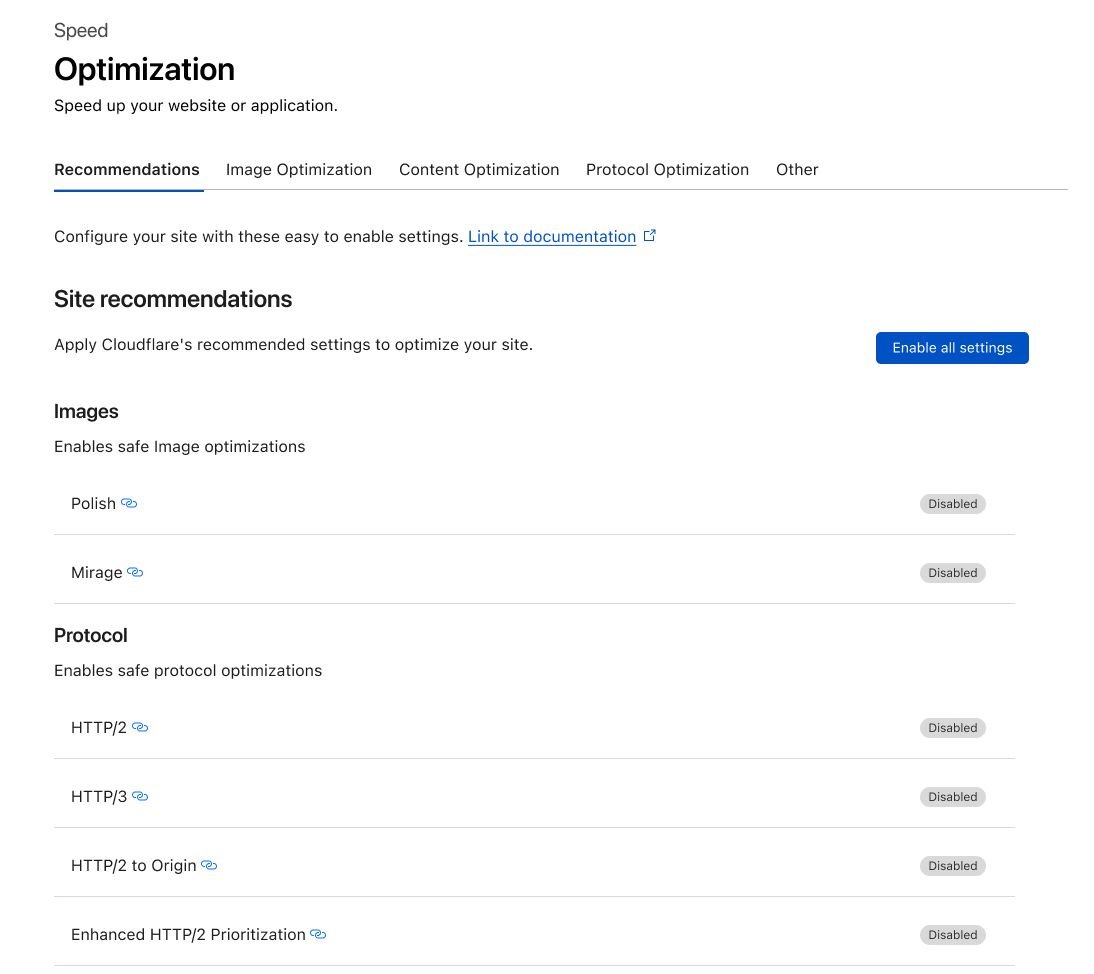 Observatory now includes an enhanced Optimization layout, which introduces a one-click recommendations center. Enabling these features on your Cloudflare zone enhances optimization for the latest HTTP protocols, including HTTP/3. Additionally, Image Delivery is improved by converting PNGs and JPEGs to the efficient WebP format. Finally, Cloudflare performance tools are also enabled, allowing users to seamlessly implement new technologies such as Early Hints. These features are designed to contribute to improved website speed and overall performance.