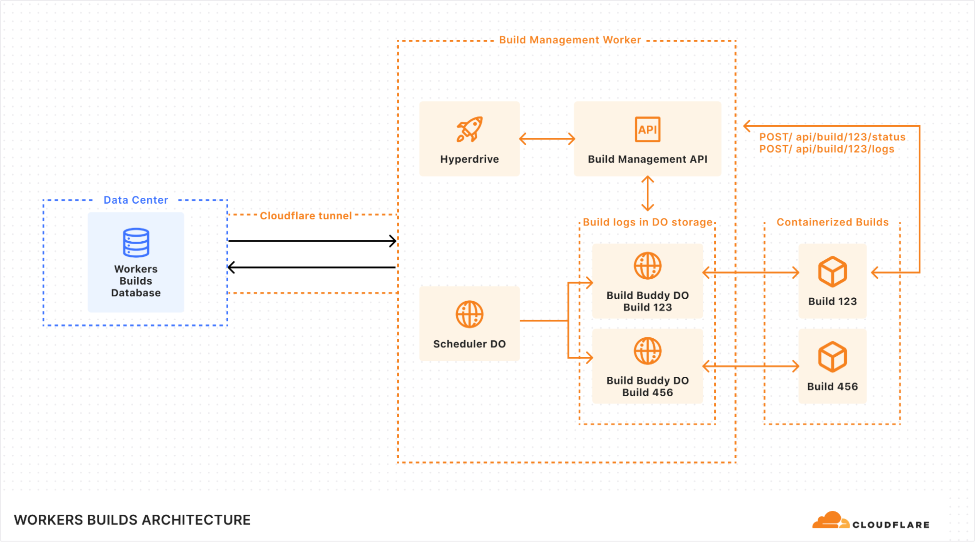 It’s also no secret that we’re big fans of being “Customer Zero” at Cloudflare, and Workers Builds is itself a product that’s built end-to-end on our Developer Platform using Workers, Durable Objects, Hyperdrive, Containers, Queues, Workers KV, R2, and Workers Observability.