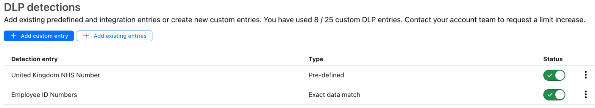 Cloudflare offers you flexibility to determine what data you are interested in detecting via DLP policies. You can use predefined profiles created by Cloudflare for common types of sensitive or regulated data (e.g. credentials, financial data, health data, identifiers), or you can create your own custom detections.