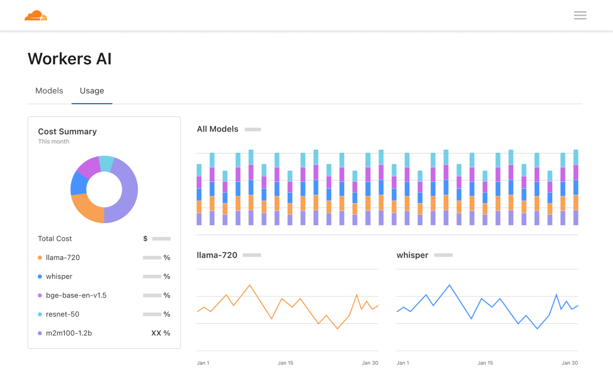 Por último, hemos renovado nuestro panel de control de Workers AI y la página de pruebas de configuración de IA. La página de Workers AI del panel de control de Cloudflare muestra ahora análisis de uso en todos los modelos, incluidos cálculos neuronales para ayudarte a predecir mejor los precios. La página de prueba de configuración de IA te permite probar y comparar rápidamente diferentes modelos, así como configurar avisos y parámetros. Esperamos que estas nuevas herramientas ayuden a los desarrolladores a empezar a crear aplicaciones en Workers AI de manera eficaz: ¡pruébalas!