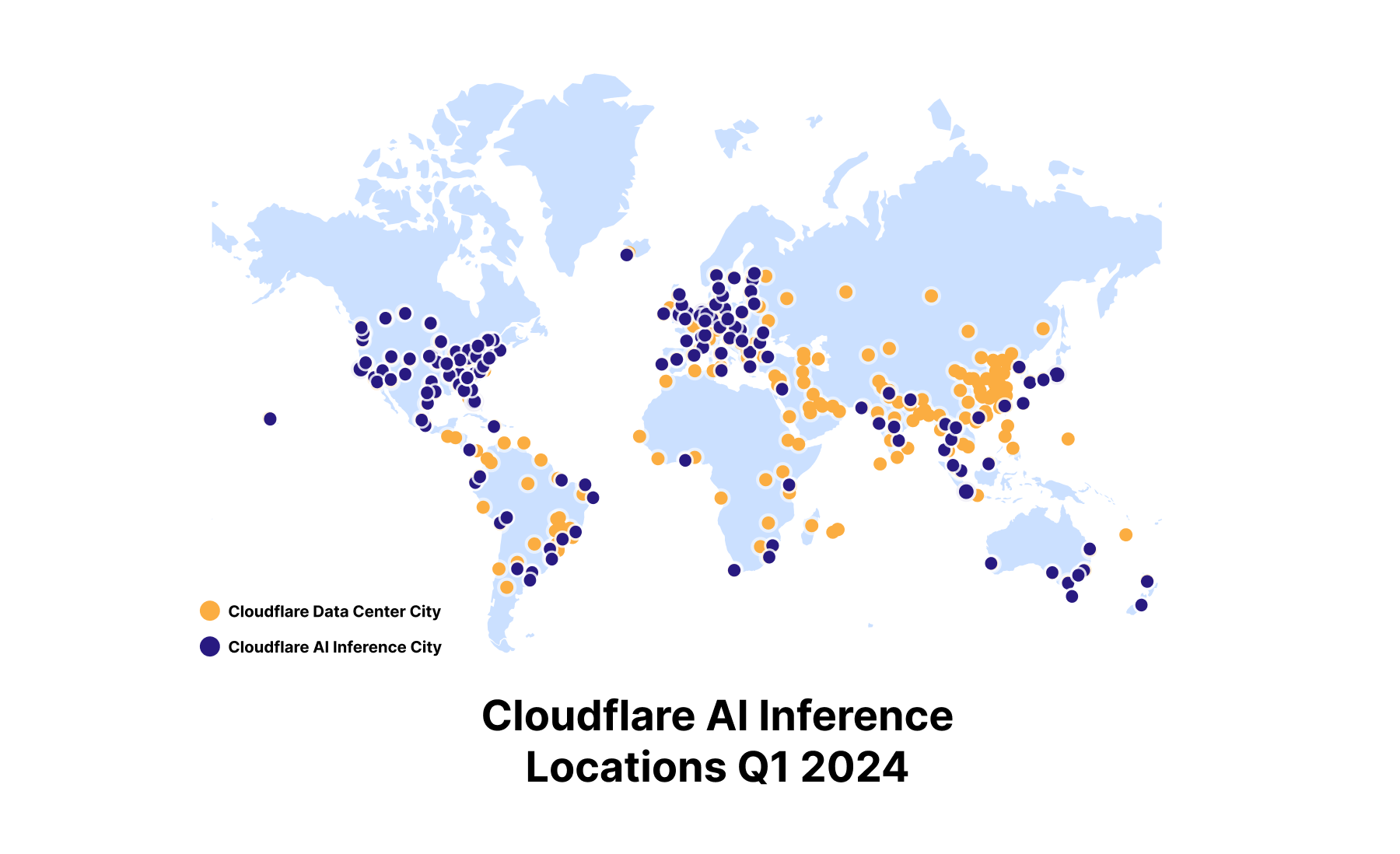Cuando anunciamos Workers AI allá por septiembre de 2023, nos propusimos implementar GPU en nuestros centros de datos de todo el mundo. Tenemos la intención de cumplir esa promesa e implementaremos GPU adaptadas a la inferencia en casi todas partes para finales de 2024, lo que nos convertirá en la plataforma de inferencia nube-IA más distribuida. Hoy tenemos más de 150 ciudades con GPU y seguiremos implementando más a lo largo del año.