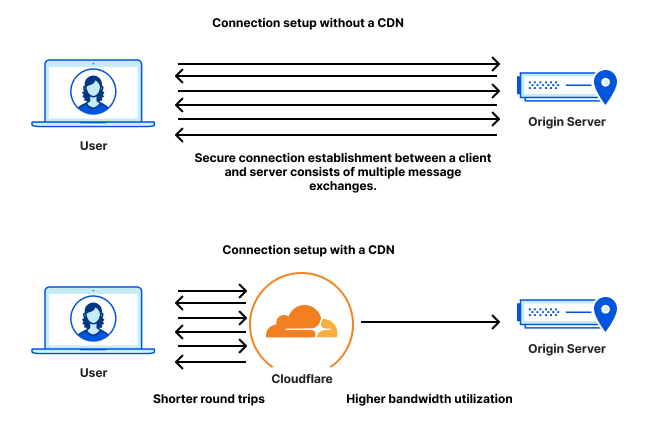 There are a few reasons latency matters in the set of transactions needed to load pages. When you connect to a website, the first thing that your browser does is establish a secure connection, to authenticate the website and ensure your data is encrypted. The protocols to do this are TCP and TLS, or QUIC (that is encrypted by default). The number of message exchanges each needs to establish a secure connection varies, but one aspect of the establishment phase is common to all of them: Latency matters most.