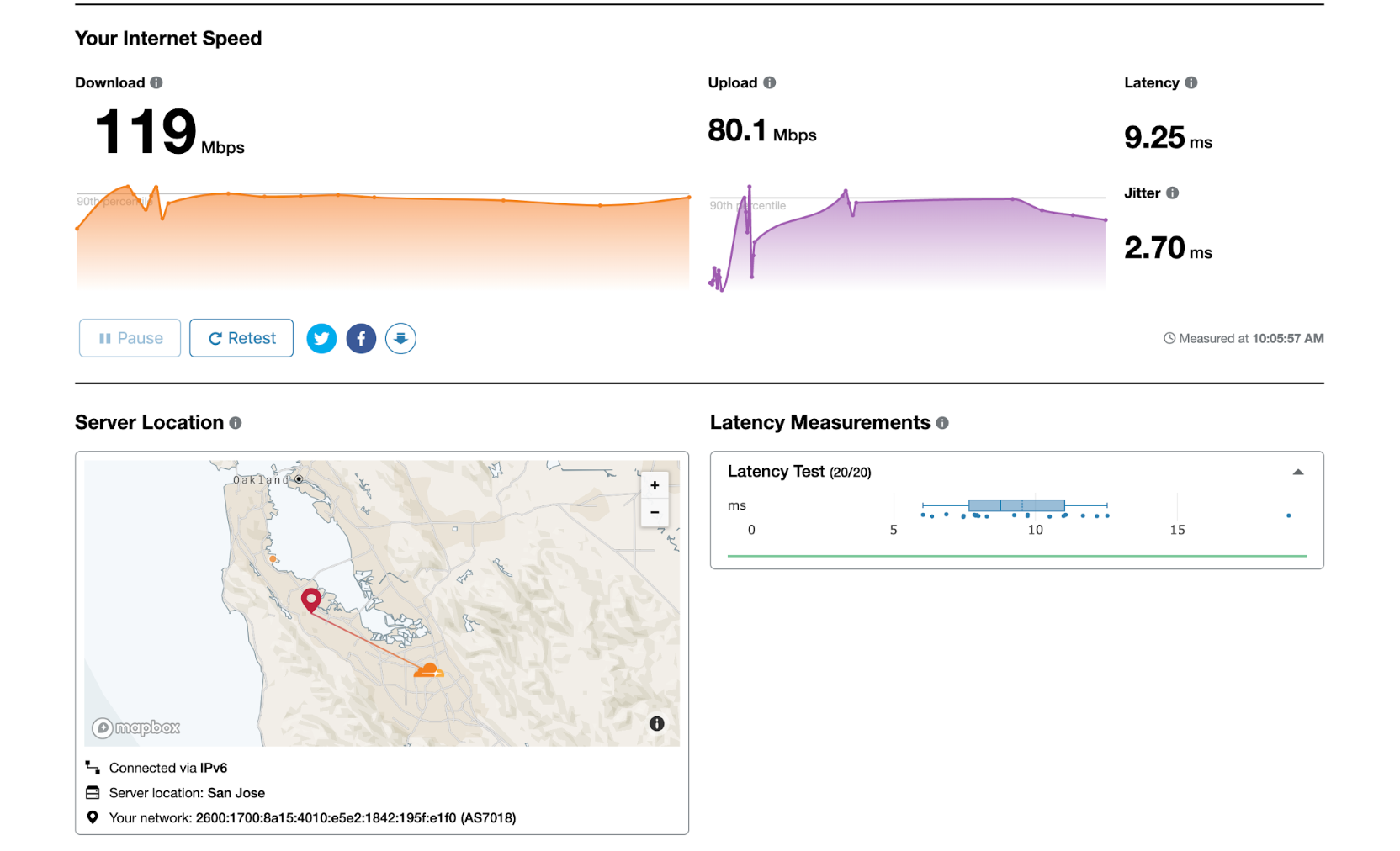 With many people being forced to work from home, there’s increased load on consumer ISPs. You may be asking yourself: how well is my ISP performing with even more traffic? Today we’re announcing the general availability of speed.cloudflare.com, a way to gain meaningful insights into exactly how well your network is performing.