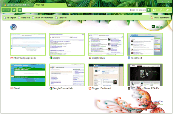 If the first batch of Chrome themes didn't include too many beautiful themes, you can now choose from a gallery of 95 themes designed by top artists like Jeff Koons, Yulia Brodskaya or Wes Craven. "We invited leading artists, architects, musicians, illustrators, filmmakers and fashion and interior designers from around the globe to create artwork for an unusual canvas: the modern web browser," explains Google. Apparently, the artists worked for free.
