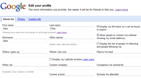 <link rel="me" type="text/html" href="http://www.google.com/profiles/your.username" />