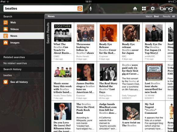 Microsoft has recently released an iPad app for Bing that's really impressive. "Bing for iPad goes beyond the traditional search experience, offering a unique and visually rich way to search the Web. The app is designed from the ground up for touch. You can quickly browse news, movies, Bing homepage images, local business listings and much more – all with the swipe of your finger," informs Bing's blog.