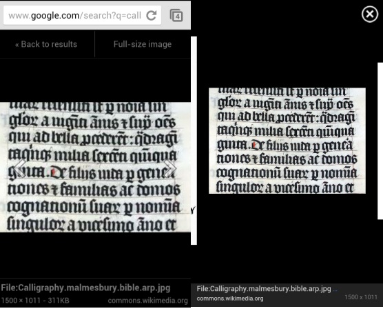 Unfortunately, just like the new desktop image search, the redesigned mobile interface replaces snippets with page titles and removes file sizes (in bytes, not pixels). The most important missing feature is the link to the full-size image. The image is actually loaded in the background and replaces Google's thumbnail, so you can still long press the image and use browser features that let you save the image or open it in a new tab.