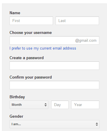 You can also use URLs like: https://accounts.google.com/NewAccount?service=cl to see the old form.