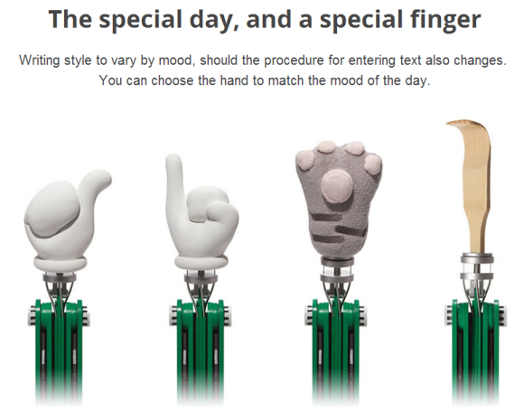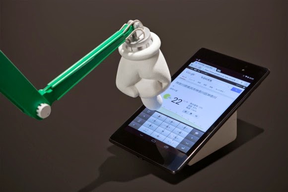 the Magic Hand. "Once you have set in front of this device a smartphone on hand, just hold the lever afterward. Instead of you, magic hand takes care of operating the smartphone. Problem of the touch panel of the past, I can solve all. Operability of comfortable buttons and levers, will make for some of the space further, the mobile life of you." (machine translation)