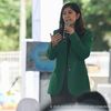 Menteri Komunikasi dan Digital Meutya Hafid saat menghadiri perayaan HUT Kompas.com ke-30, Jagat Literasi yang digelar di Menara Kompas, Jakarta Pusat, Senin (15/9/2025).Meutya mengenakan kemeja putih yang dibalut outer batik panjang dengan potongan lurus yang elegan, serta celana panjang hitam.