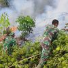 Petugas dengan cepat melakukan penyiraman untuk mencegah api mengarah ke permukiman warga.