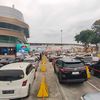 Meski dihadapkan pada kebisingan kendaraan dan terik matahari, para pedagang terus menawarkan dagangan mereka di antara antrean pemudik.