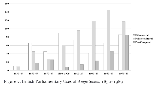 One might have expected an increase in the ethnoracial uses of “Anglo-Saxon” [in the UK] since the advent of the Brexit era, but the data shows this not to be the case. Any impression otherwise is probably due to increased awareness of ethnoracial uses of the term. In other words, people are only now noticing the uses that have always been there or are now reading ethnic connotations into the term that they had not before.