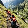 Di saat korban mulai memanjat, tangga dipegangi oleh dua pelajar sekolah menengah kejuruan (SMK) yang sedang menjalani praktik kerja lapangan.