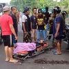 Rangkaian benturan berlanjut ketika truk kembali menabrak dua sepeda motor yang melaju searah.