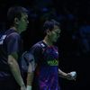 Leo Rolly Carnando/Bagas Maulana (kiri) tampil sebagai runner up All England 2025 usai takluk dari Kim Won-ho/Seo Seung-jae (Korea Selatan) pada partai final ganda putra di Utilita Arena, Birmingham, Inggris, Minggu (16/3/2025).Selain Denmark, Korea Selatan juga tampil dominan dengan meraih dua gelar juara melalui tunggal putri dan ganda putra.