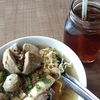 “Itu nanti diawur-awur (campur) dengan tepung terigu sampai semua sisi bakso kena terigu. Nanti kalau digoreng jadi enggak saling menempel.” ungkapnya.