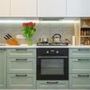 Salah satu perpaduan warna kabinet dan meja dapur yang cocok yaitu hijau dan putih. Anda bisa memilih kabinet berwarna hijau dan meja dapur berwarna putih.