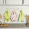 Ganti pelembut kain dengan cuka putih suling. Selain membuat handuk lebih lembut secara alami, cuka juga meluruhkan sisa sabun dan bakteri penyebab bau.