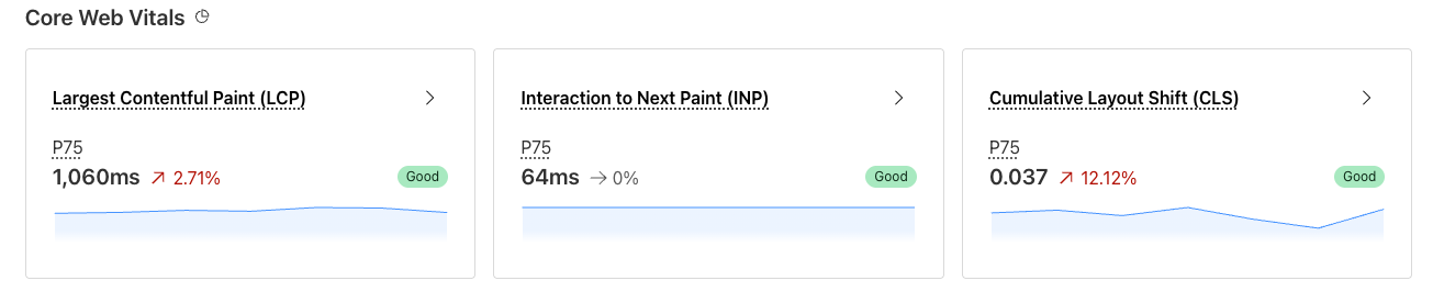 The first data you’ll see when you visit Observatory is real-user data collected with Real User Monitoring (RUM), with a particular focus on the Core Web Vital metrics.