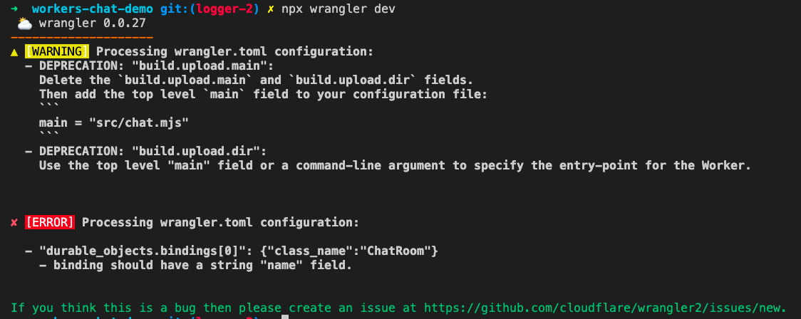 One of the worst feelings a developer can face is being presented with an error when writing code, and not knowing how to fix it and proceed. We heard feedback from many of you who were frustrated with the lack of error messages, and how you would spend hours trying to figure out what went wrong. We've now added new error and warning messages, so you can easily spot the problems in your code. When possible, we also include steps you can follow to fix your Worker, including things that you can simply copy and paste! This makes Wrangler much more friendly to use, and we promise the experience will only get better.