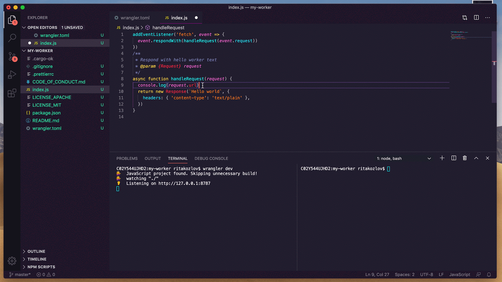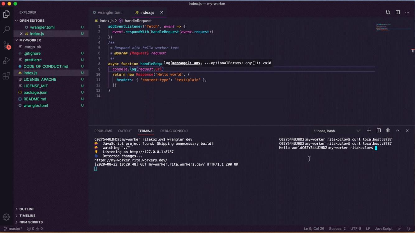 As you update your code, wrangler dev