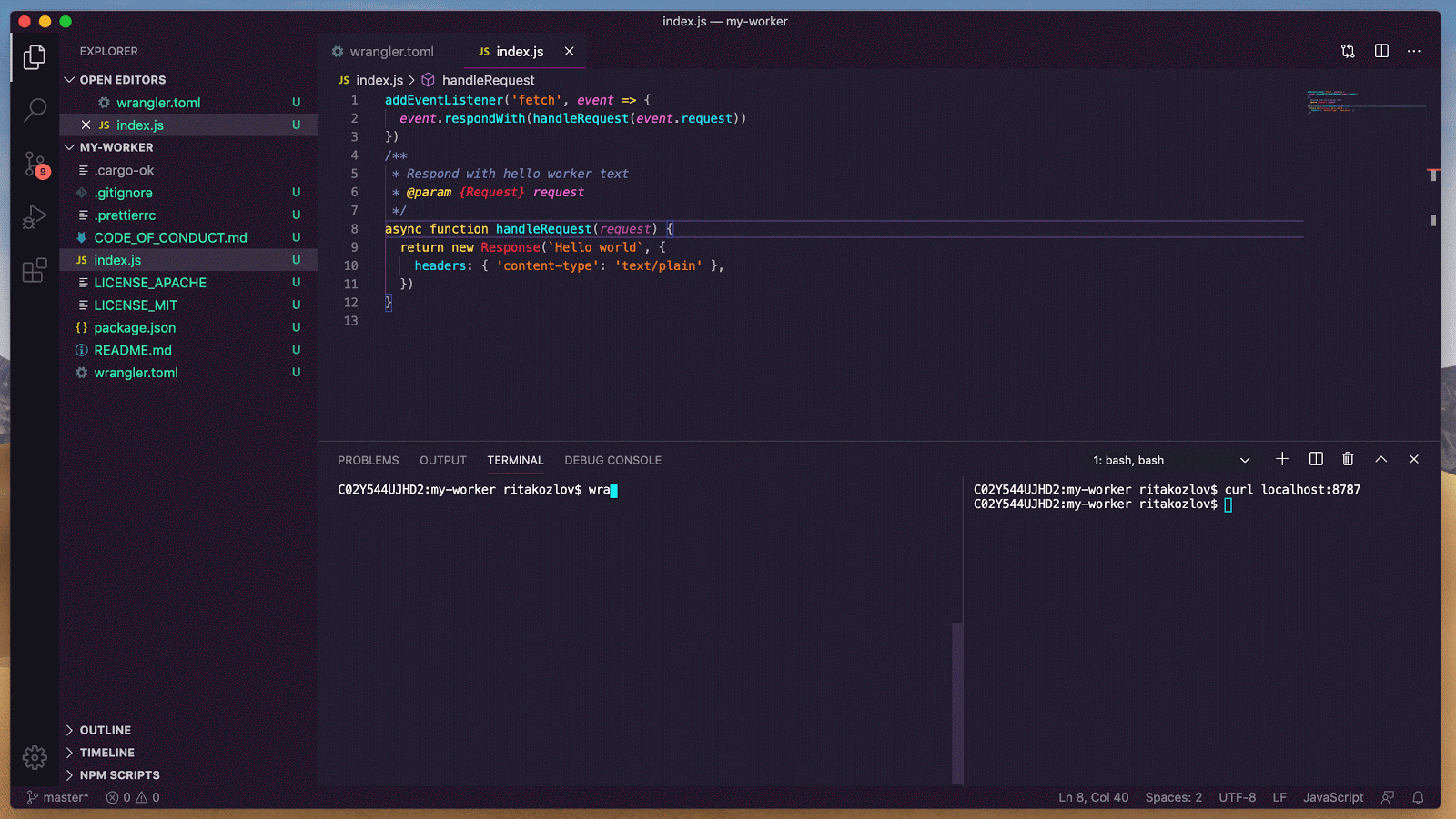 Beyond the Workers runtime, there are many components that make up Cloudflare’s edge, including DNS resolution, the Cloudflare cache — all of those parts are what makes Cloudflare Workers so powerful. That means that without those components, a standalone runtime is insufficient to represent the behavior of Worker request handling. The reason to develop locally first is to have the opportunity to experiment without affecting production. Thus, having a local development environment that truly reflects production is a requirement.