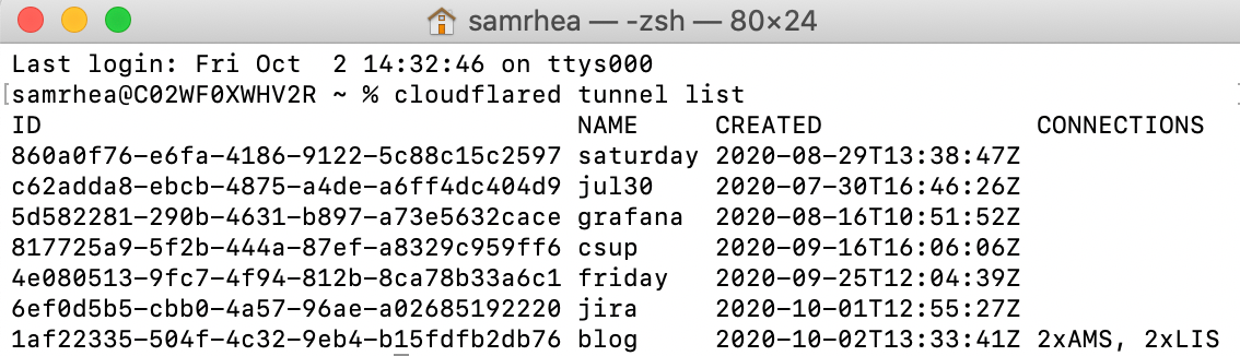 to view the Tunnels created and their connection status. You can delete Tunnels, as well, by running cloudflared tunnel delete <name>