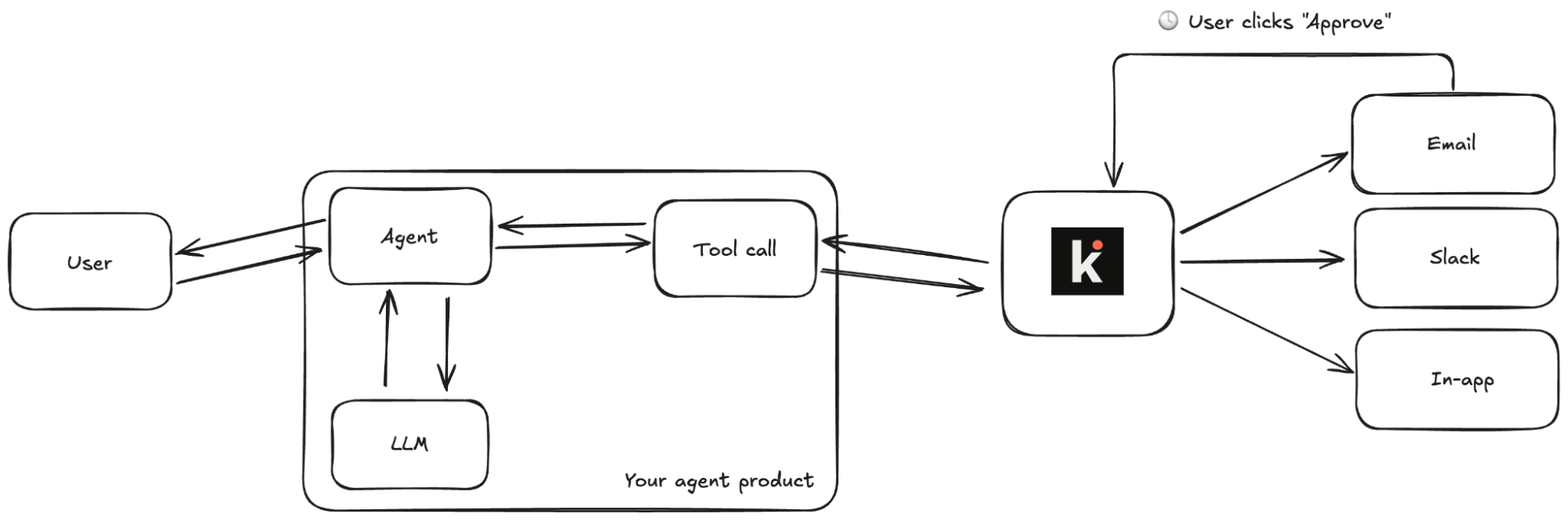 You can use Knock to power human-in-the-loop flows for your agents using Knock’s Agent Toolkit, which is a set of tools that expose Knock’s APIs and messaging capabilities to your AI agents.