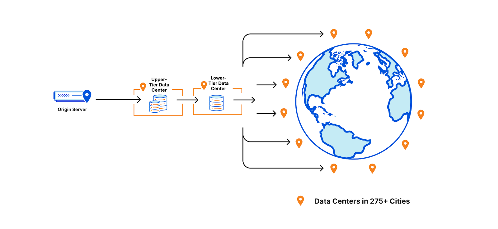 To help assets remain cached for longer, a few years ago we introduced Tiered Cache which organizes all of our 250+ global data centers into a hierarchy of lower-tiers (generally closer to visitors) and upper-tiers (generally closer to origins). When a request for content cannot be served from a lower-tier’s cache, the upper-tier is checked before going to the origin for a fresh copy of the content. Organizing our data centers into tiers helps us cache content in the right places for longer by putting multiple caches between the visitor’s request and the origin.