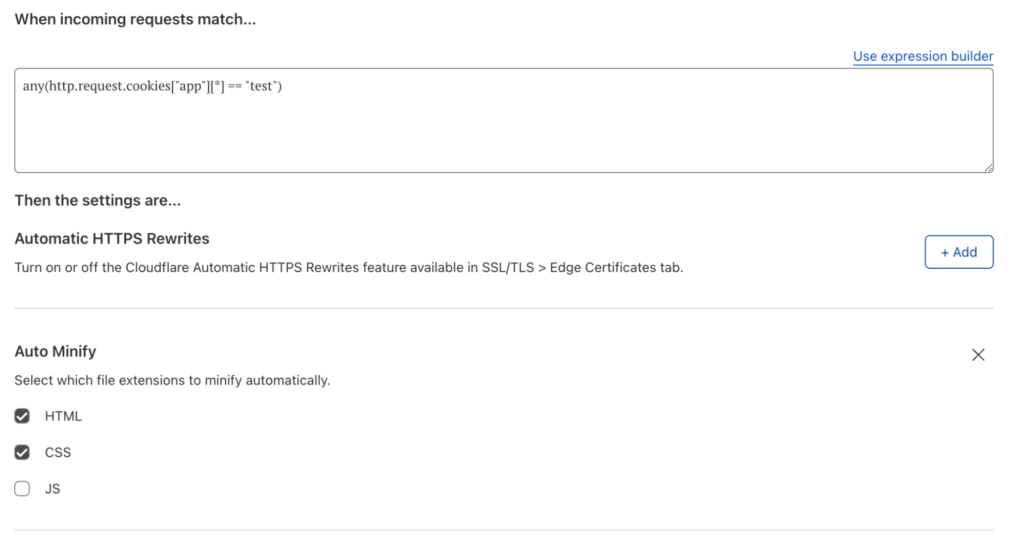 Ten years later, and with all F’s lowercase, we are excited to introduce Configuration Rules — a Page Rules successor and a much improved way of controlling Cloudflare features and settings. With Configuration Rules, users can selectively turn on/off features which would typically be applied to every HTTP request going through the zone. They can do this based on URLs - and more, such as cookies or country of origin.