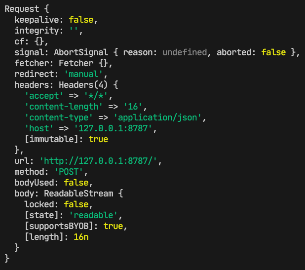 . It might be the simplest tool for a developer to debug, but don’t underestimate it. Built into the Cloudflare runtime is node-like logging, which provides detailed, color-coded logs. Locally, you can view these logs in a terminal window, and they will look like this: