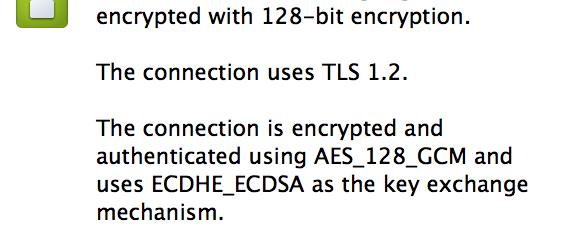 I mentioned earlier that fewer than fifty ECDSA certificate are being used on the web. You can now count https://blog.cloudflare.com among them. If you don't see a lock icon, click here for the HTTPS version of the site. Once you are viewing this site over HTTPS, take a look at the TLS information bar (click on the lock icon in your address bar). You should see the key exchange mechanism listed as ECDHE_ECDSA, which means the certificate is using ECDSA. If the HTTPS version site does not load, your browser probably does not support ECDSA.