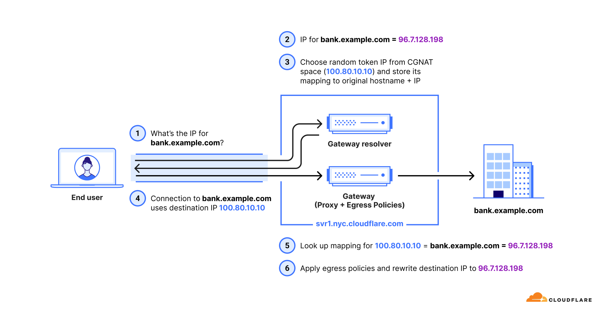We took advantage of the fact that Cloudflare Gateway also operates its own DNS resolver. Every time an end user wants to access a destination hostname, the Gateway resolver first receives a DNS query for that hostname before sending its network traffic to the destination hostname.
