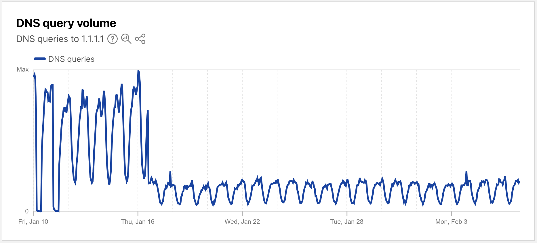 If you share our DNS graphs on social media, be sure to tag us: @CloudflareRadar and @1111Resolver (X), noc.social/@cloudflareradar (Mastodon), and radar.cloudflare.com (Bluesky). If you have questions or comments, you can reach out to us on social media, or contact us via email.