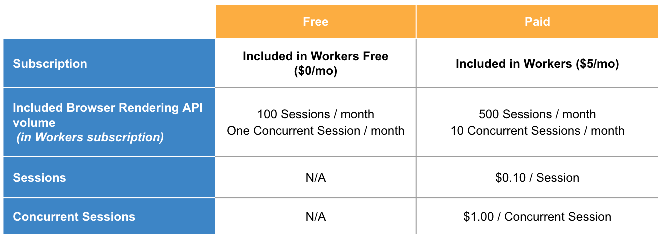 We’ve seen so much interest from the developer community since launching last year. While the Browser Rendering API is still in beta (sign up to our waitlist to get access), we wanted to share a way to get more out of our current limits by using the Browser Rendering API with Durable Objects. We’ll also be sharing pricing for the Rendering API, so you can build knowing exactly what you’ll pay for.