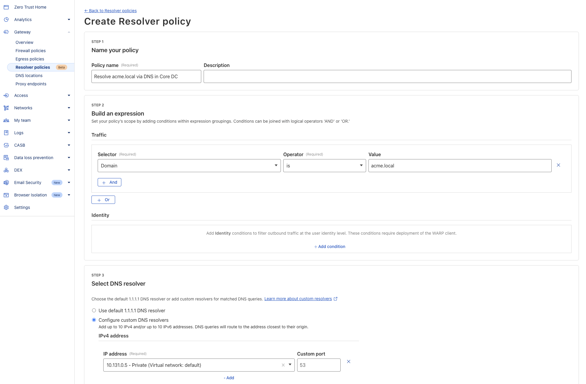 First, we need to tell Cloudflare Gateway how to reach your private DNS server