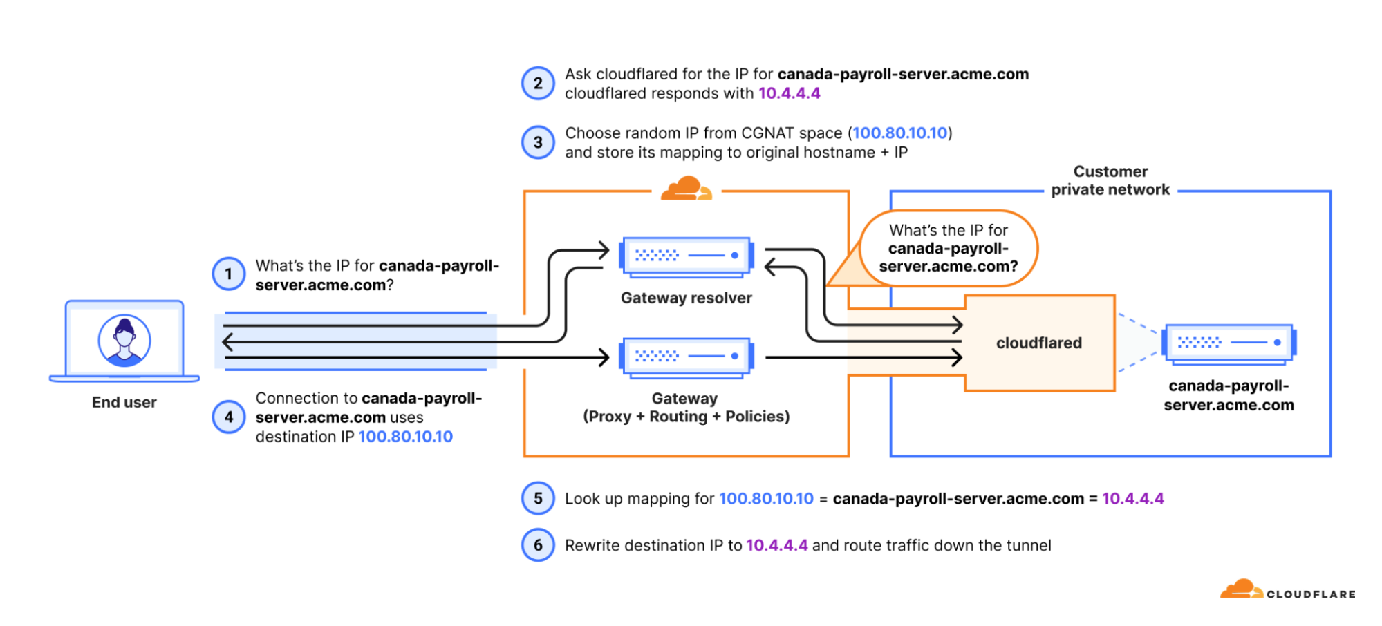 agent running in your private network to resolve the real IP for that hostname. Sincecloudflared