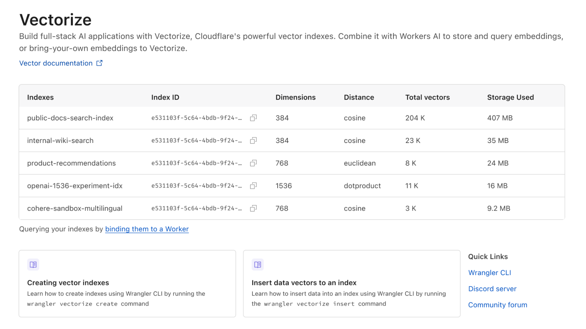 And if you have questions about how to use Vectorize for our product & engineering teams, or just want to bounce an idea off of other developers building on Workers AI, join the #vectorize and #workers-ai channels on our Developer Discord.
