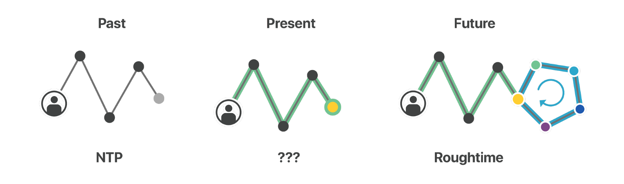 However, to bring cryptographic trust to time while maintaining precision, we need something in between NTP and Roughtime.
