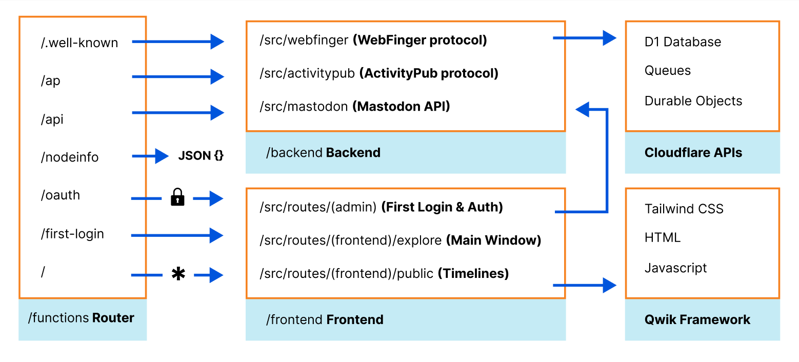 For example, Mastodon’s /api/v1/timelines/public API endpoint is handled by /functions/api/v1/timelines/public.ts with the onRequest method.