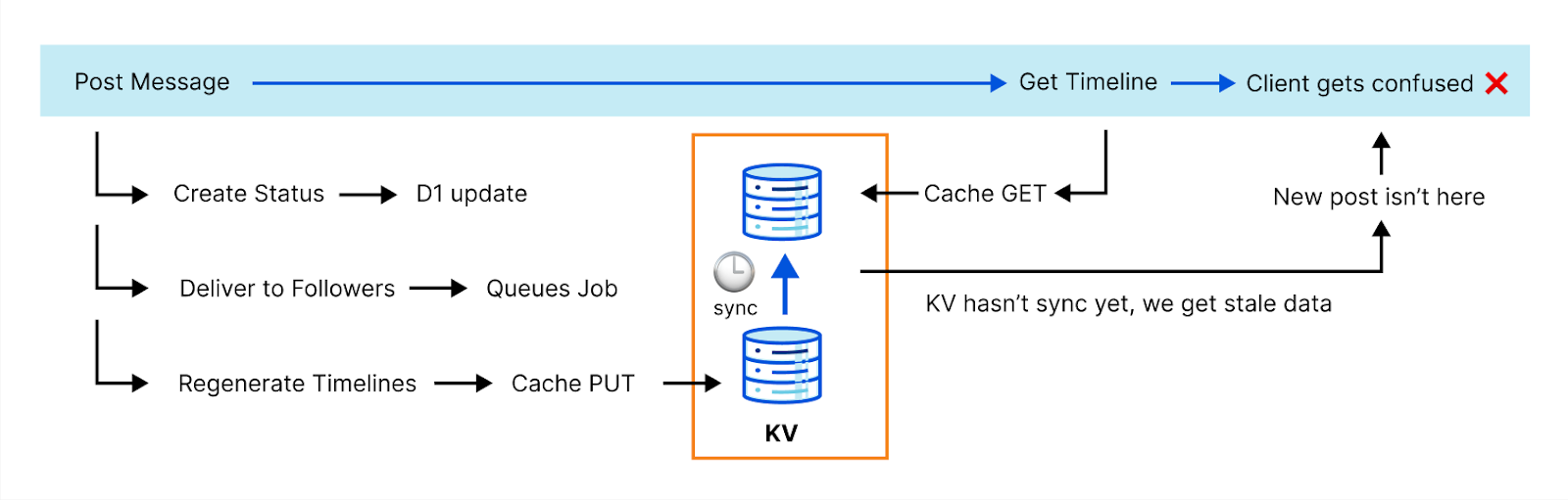 Here’s a simplified example of how we interact with D1 when you start following someone on the Fediverse: