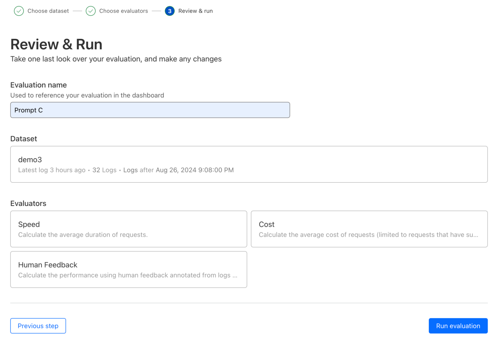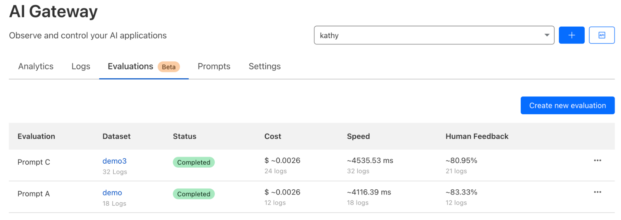 We are also taking our first step towards comprehensive AI evaluations, starting with evaluation using human in the loop feedback (this is now in open beta). Users can create datasets from logs to score and evaluate model performance, speed, and cost, initially focused on LLMs. Evaluations will allow developers to gain a better understanding of how their application is performing, ensuring better accuracy, reliability, and customer satisfaction. We’ve added support for cost analysis across many new models and providers to enable developers to make informed decisions, including the ability to add custom costs. Future enhancements will include automated scoring using LLMs, comparing performance of multiple models, and prompt evaluations, helping developers make decisions on what is best for their use case and ensuring their applications are both efficient and cost-effective.