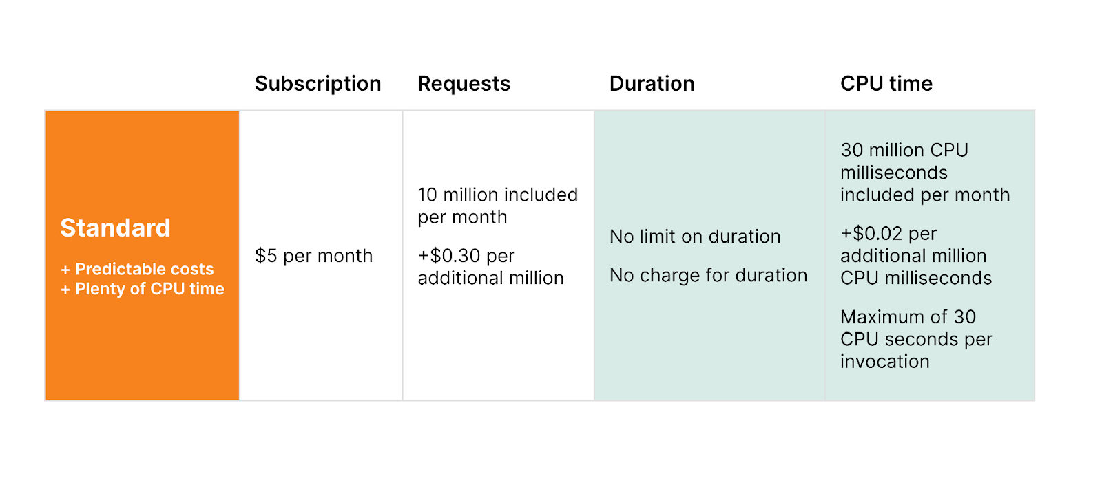 With this announcement, Cloudflare is the first and only global serverless platform to offer standard pricing based on CPU time, rather than duration. We think you should only pay for the compute time you actually use, and that’s how we’re going to bill you going forward.