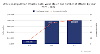 Overall, we estimate that in 2022, DeFi protocols lost $403.2 million in 41 separate oracle manipulation attacks.What are oracles and how can manipulating them earn an average of $1.1M/day? Below the fold I attempt an explanation.