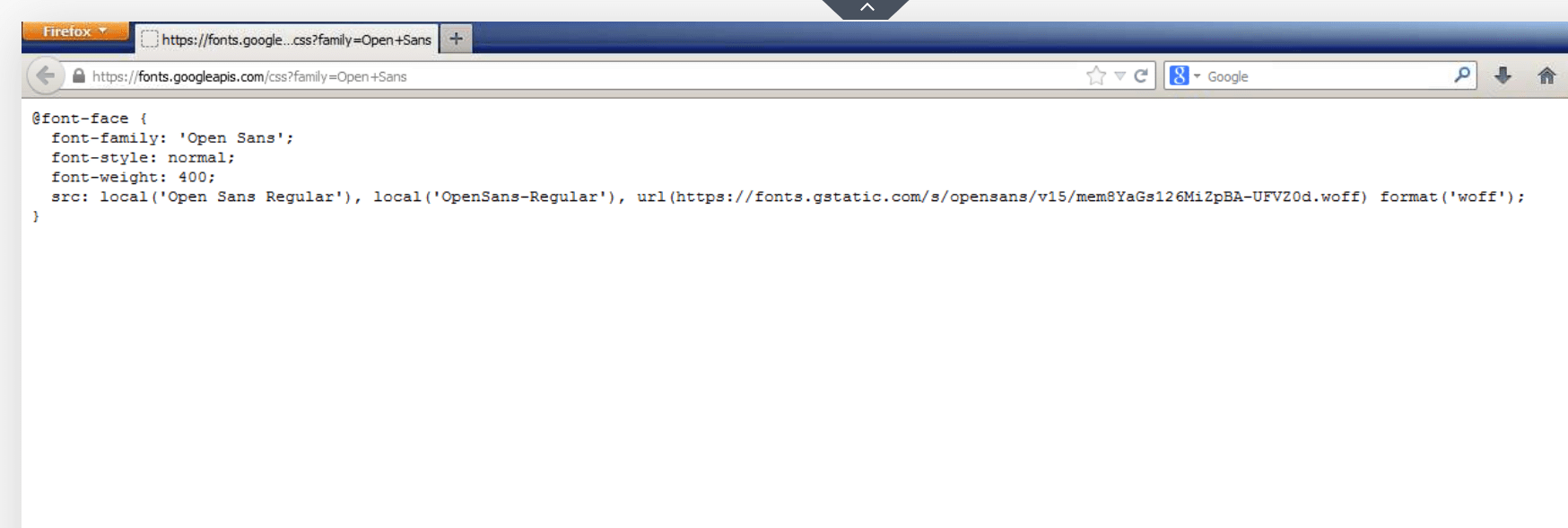 The issue is that Google does fancy Google things here and the contents of that original stylesheet changes based on the browser requesting it. That screenshot above is Chrome 66. Here’s Firefox 20 on Windows 7: